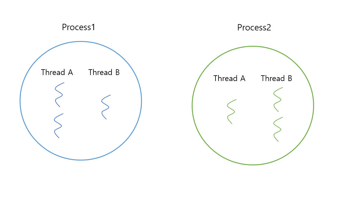 - 프로세스 : 자체적인 별도의 메모리 공간이 있다.